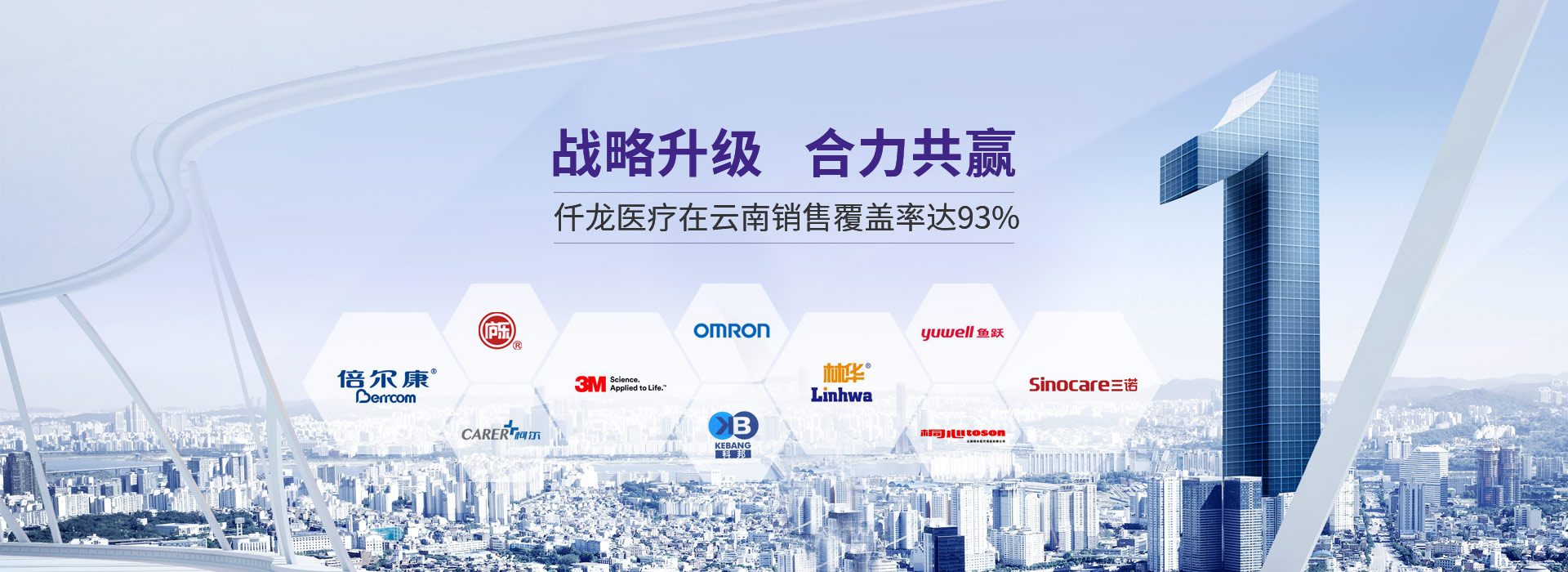 Industry operation云南仟龍是3M中國、上海科邦、江蘇魚躍、三諾生物等企業云南總代理 所經營的醫療用品均具備三證證書、產品合格證、產品代理資格證等 正規注冊的醫療耗材品牌廠家少,產品替代性低,更具市場競爭力